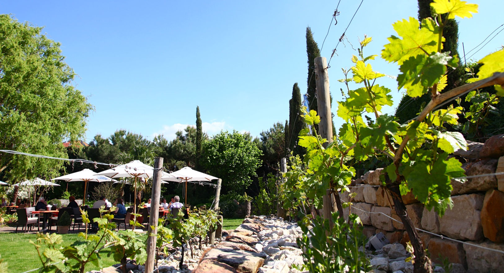 Im mediterranen Garten können sie mit einem Glas BÜHLER Wein entspannt Geist und Seele baumeln lassen. Zwischen Feigen, Palmen, Oleander und Zitrusbäumen entfliehen Sie dem Alltag und genießen auf Pfälzer Boden südländische Urlaubsträume.
